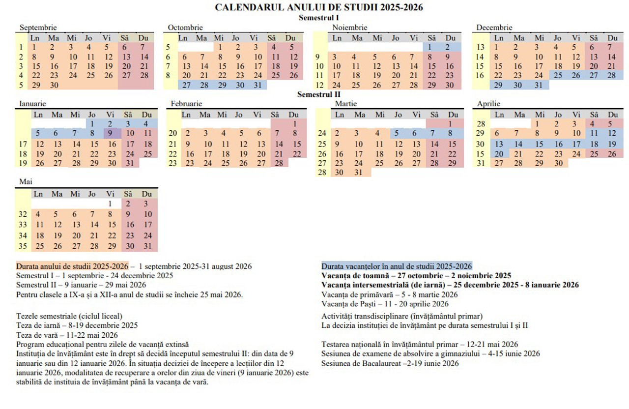 Elevii vor intra în vacanța de primăvară pe 5 martie și vor reveni la școală pe 9 martie. Următoarea vacanță, cea de Paști, va avea loc în perioada 11–20 aprilie. Al doilea semestru de studii se va încheia pe 29 mai. Elevii din clasele a IX-a și a XII-a vor finaliza cursurile mai devreme, pe 25 mai, urmând să susțină examenele naționale.